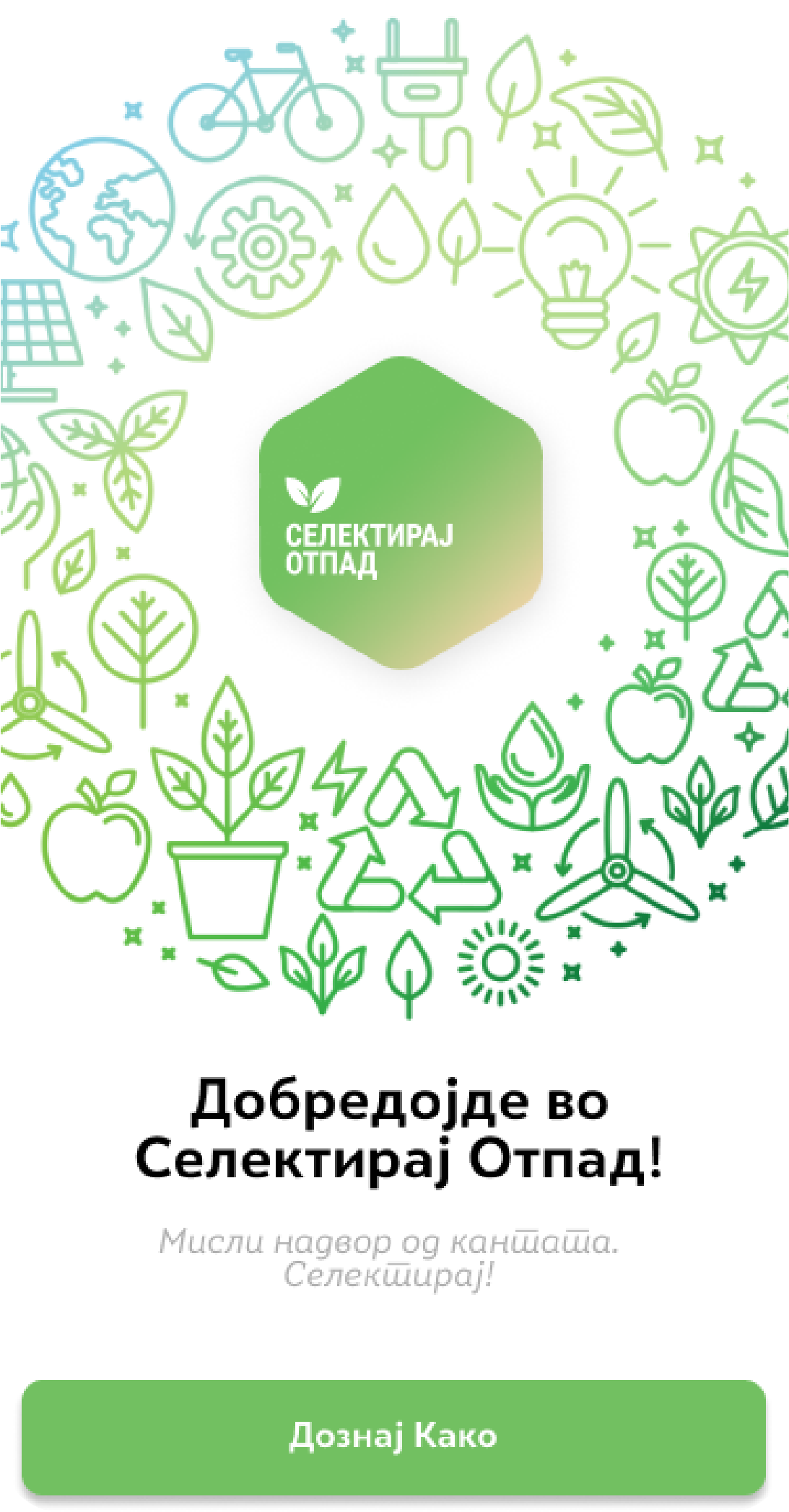 Долго време учиме дека треба да се селектира. Но, се што селектираме не значи дека може да биде рециклирано. Преку апликацијата Селектирај отпад унапреди го твоето познавање за правилна селекција на отпадот и разбери ја твојата улога во процесот на селекција. Помогни на животната средина, Селектирај отпад ќе те награди.